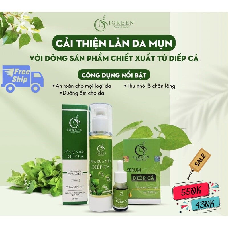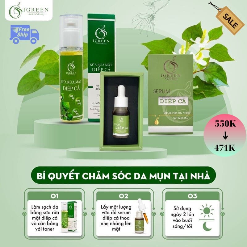 Combo Serum Diếp Cá và Sữa Rửa Mặt Thiên Nhiên IGREEN: Giải Pháp Hoàn Hảo Cho Da Mụn và Giảm Nhờn