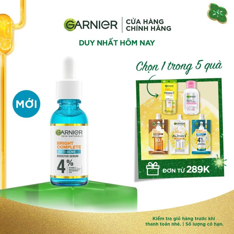 Dưỡng Chất Cho Da Dầu Mụn Garnier Bright Complete Anti-Acnes Booster Serum 4% [Niacinamide, BHA, AHA, Vitamin C] 30ml