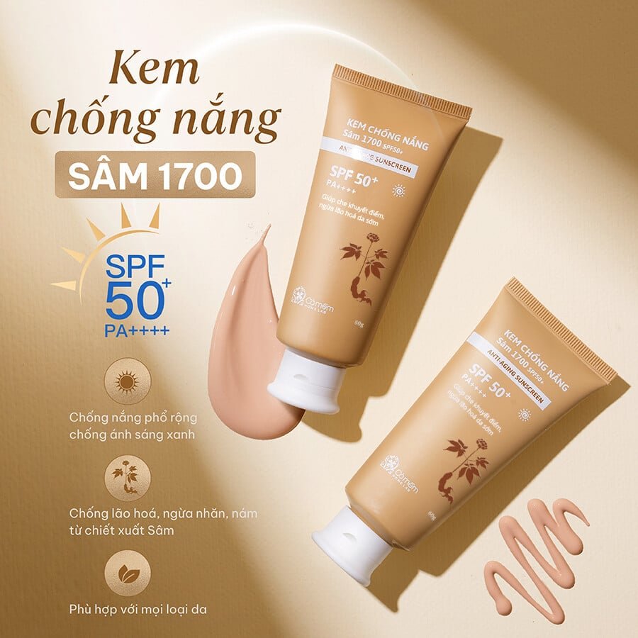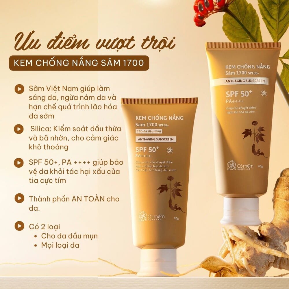 👉 Kem chống nắng Sâm 1700- Kem chống nắng phổ rộng Ngừa lão hoá da có 2 loại: kem chống nắng da dầu mụn và kem chống nắng cho mọi loại da.