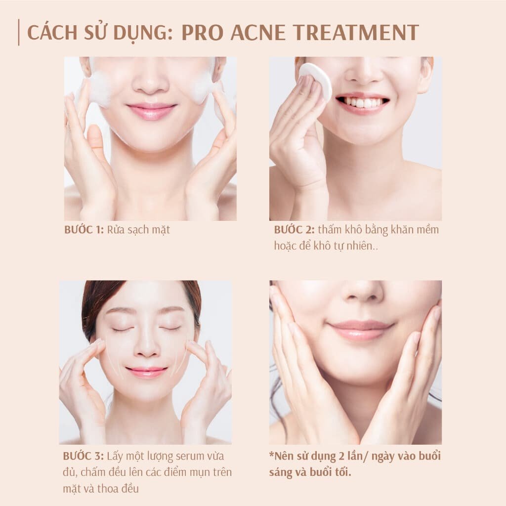 - Lấy một lượng serum vừa đủ, chấm đều lên các điểm mụn trên mặt và thoa đều.